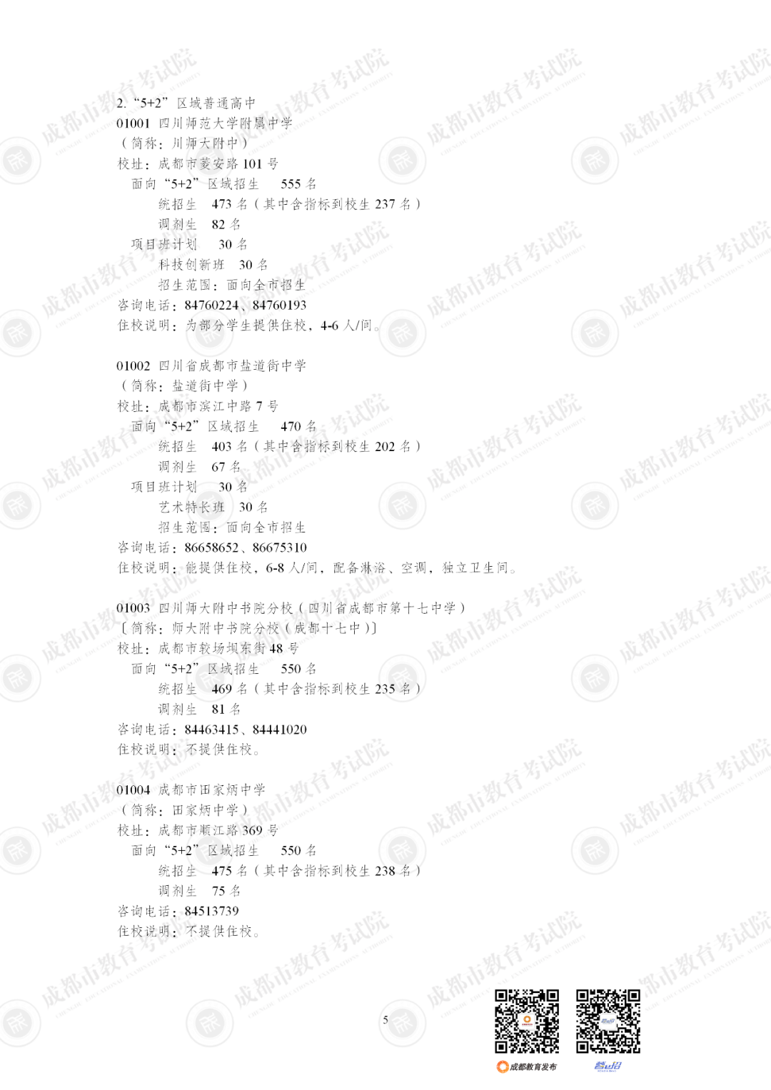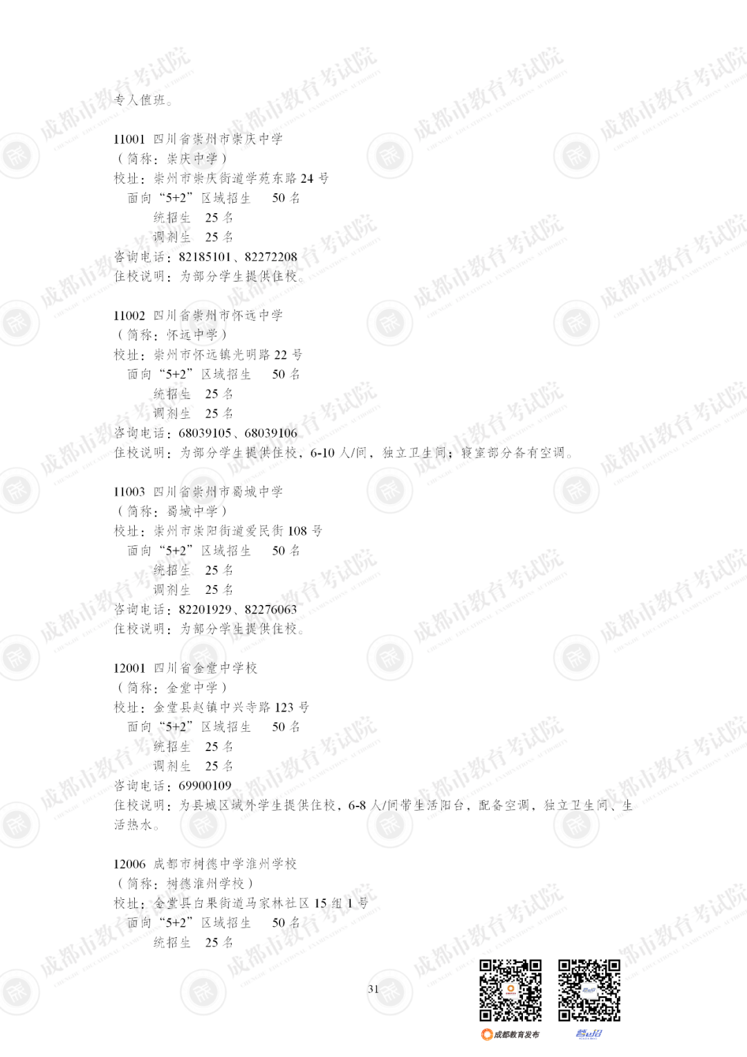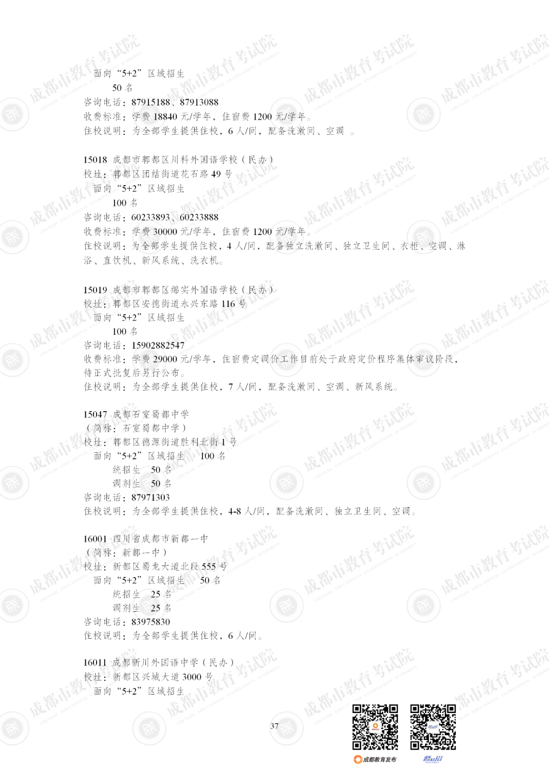 2025年成都市高中阶段教育学校统一招生计划请查收