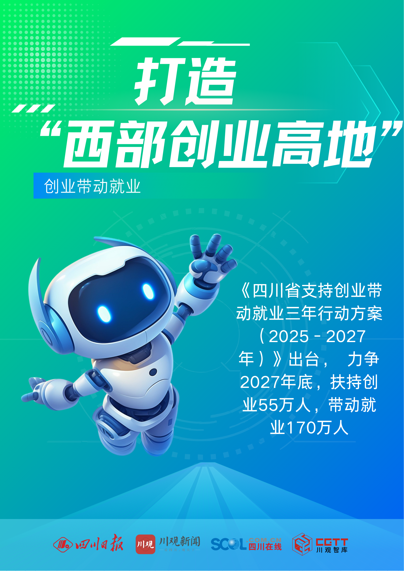 创业是最积极的就业。近日,四川省就业促进和劳动保护工作领导小组办公室印发《四川省支持创业带动就业三年行动方案(2025—2027年)》,力争到2027年底,累计发放创业担保贷款150亿元,个人经营性贷款余额新增1800亿元,扶持创业55万人,带动就业170万人,将四川打造为汇集人才、资源、资金、项目的“西部创业高地”。