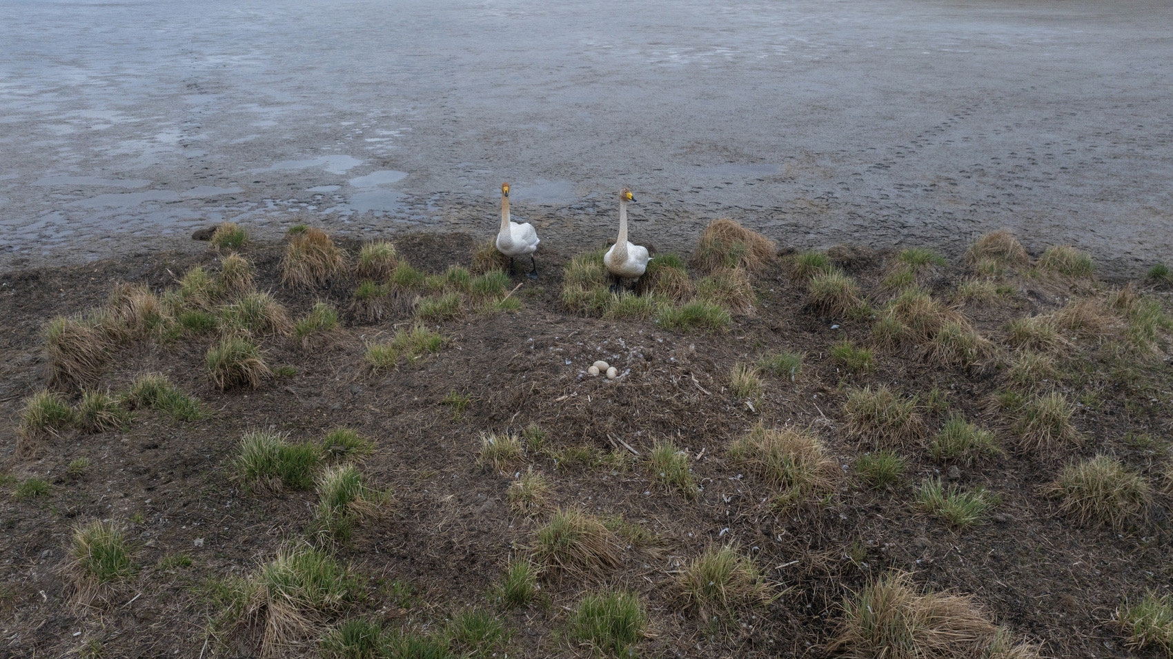 大天鹅繁殖巢现湿地,动物种群数不断扩大
