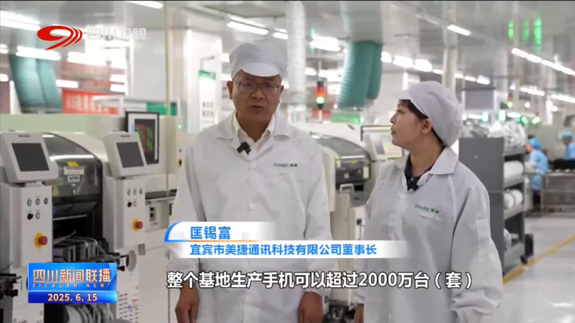 宜宾市美捷通讯科技有限公司董事长 匡锡富:整个基地生产手机的话可以超过2000万台(套),像目前正在生产的这个订单,单个项目就超过500万台,折算产值是超过35亿元,主要出口到非洲、欧洲、东南亚等国家和地区。今年以来基本是满负荷地在运转,并且在现阶段来讲,我们还在大量地招工。