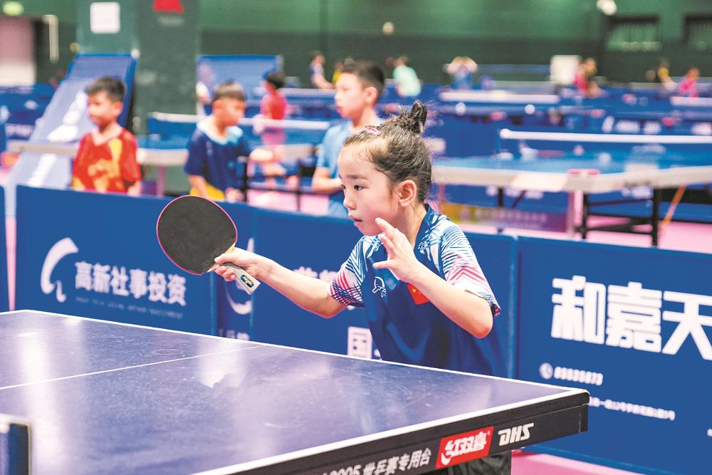 乒乓少年趁着暑期加紧训练。