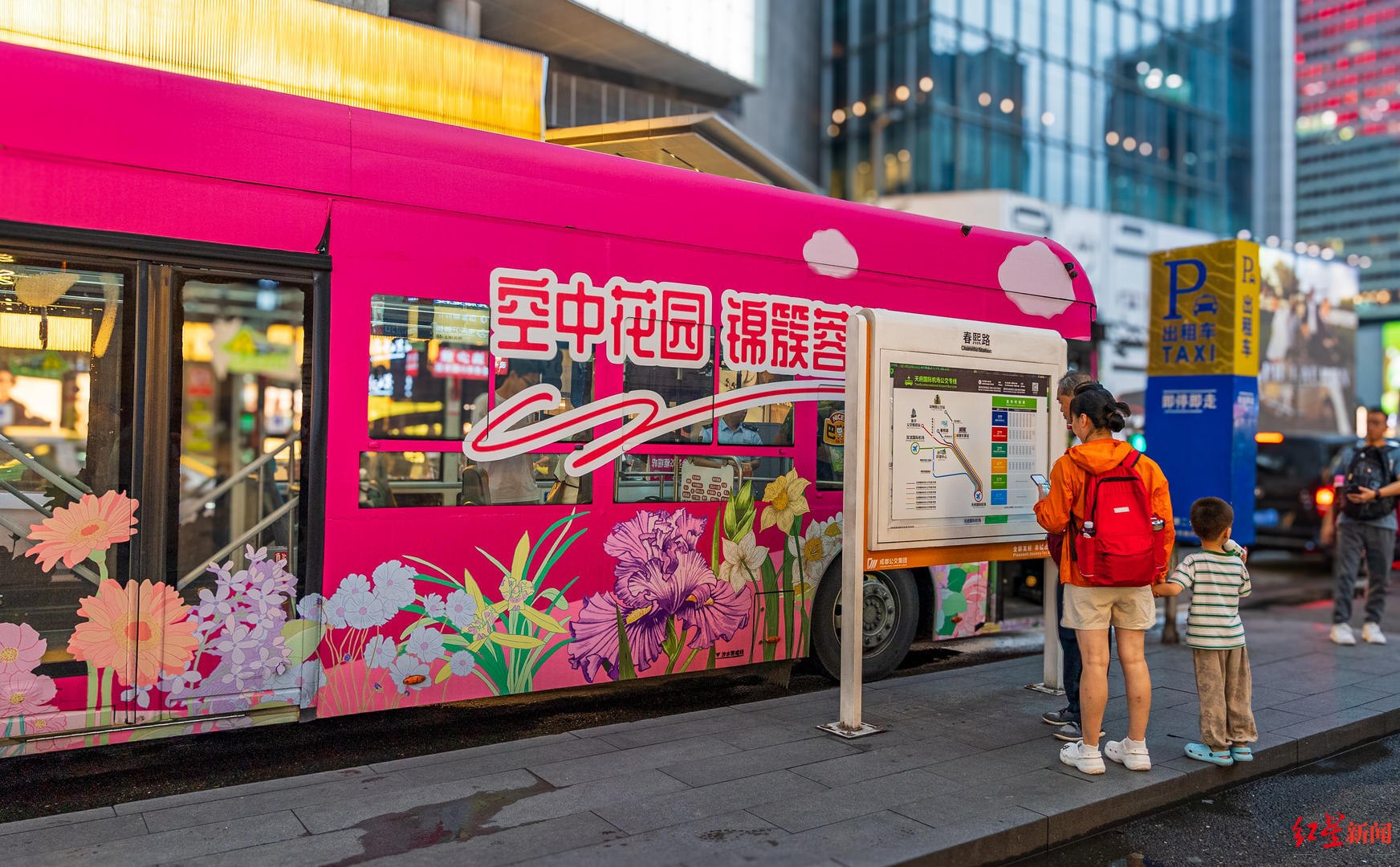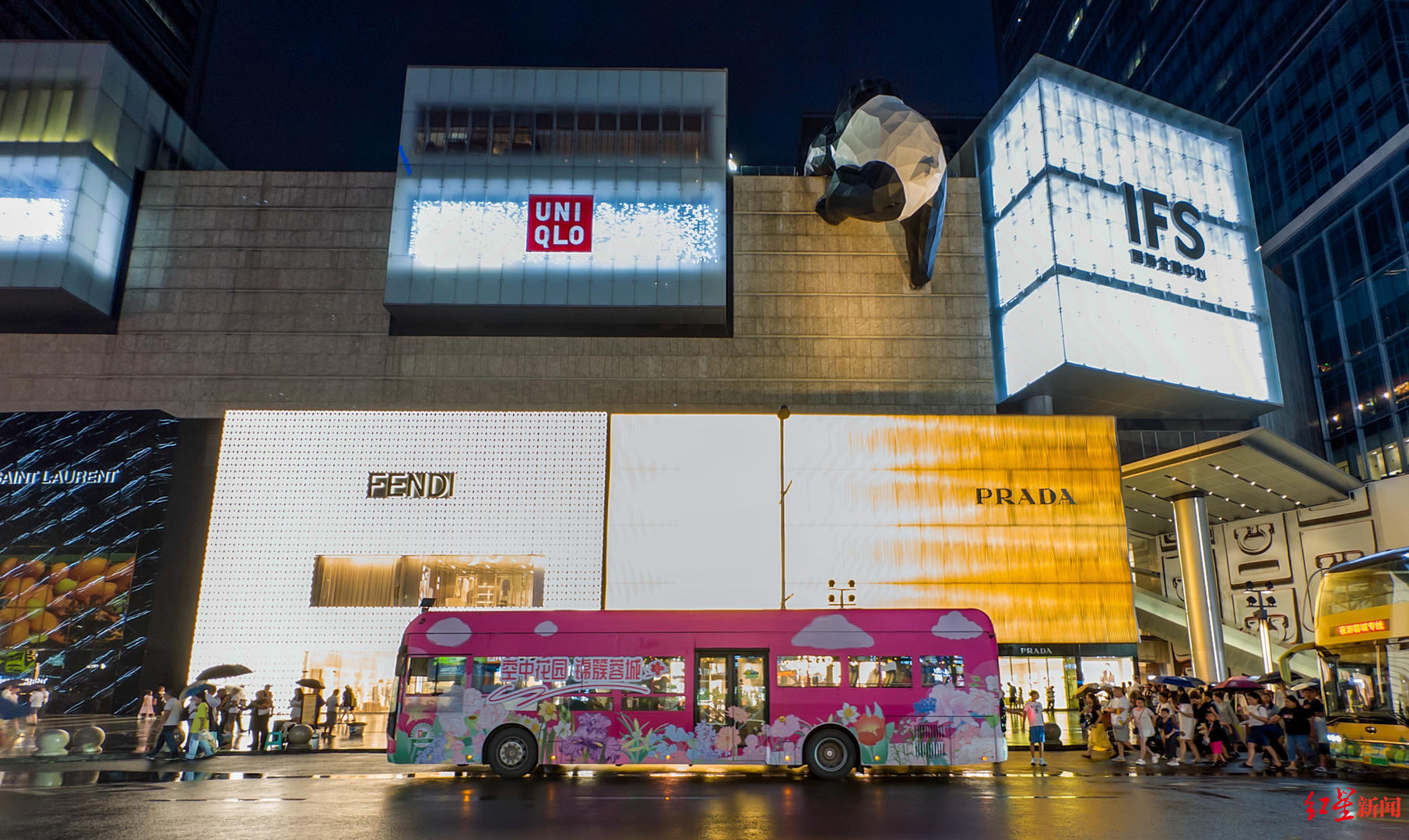 7月26日晚7点50分,当夜幕悄然降临,当城市华灯初上,在成都春熙路IFS国际金融中心前的道路上,一辆粉红色涂装的公交车停靠在站内,购买了首趟“音乐巴士”车票的市民已经登车,静待车辆启动后,感受夜间成都的流光溢彩,体验音乐的独特魅力。